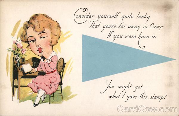 Front: re's a soldier who is being missed inq missed Both day and night-time, too, By a lonely friend in And that soldier man is u. Back: 3- 1 POST CARD. 1 ADDRESS CORRESPONDENCE MADE IN U.S.A. HOME TOWN SERIES