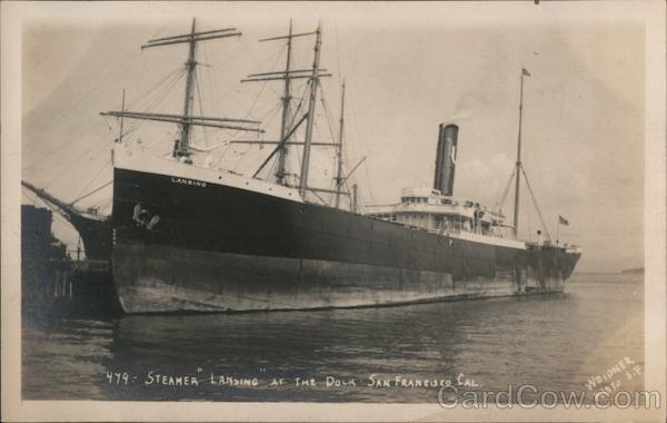 Front: LANSING 419 STEAMER LANSING AT THE DOCK AN FRANCISCO CAL WEIDNER Pro To S.F Back: 25 RTUR4 POST CARD PLACE STAMP RHERE POR MESSAGs FOR ADDRESS ONLY ARTUR4 TURA RTUR