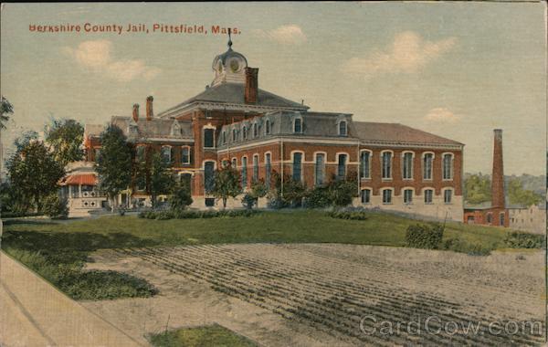 Front: Berkshire County Jail, Pittsfield, Maps. Back: De Post Card. Place Stamp Here. 1c to United States Canada or Mexico 2c to all other Countries. THIS SIDE FOR MESSAGE.