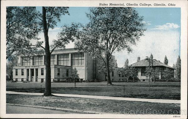 Front: Hales Memorial, Oberlin College, Oberlin, Ohio OB554 Back: PLACE ONE CENT STAMP HERE POST CARD GENUINE CURTEICH-CHICAGO "C. T. BLUE S KY" POST CARD