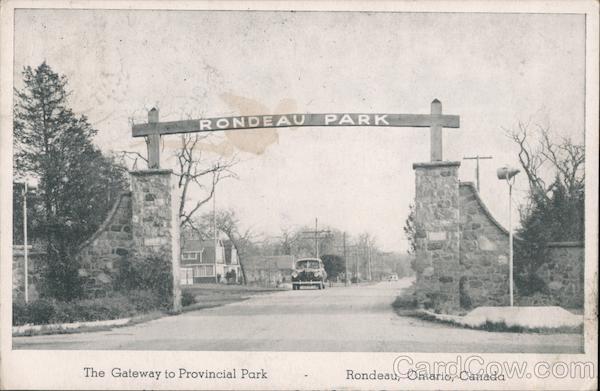 Front: RONDEAU PARK The Gateway to Provincial Park Rondeau, Ontario, Canada Back: POSTAGE CANADA POSTES POST CARD ONT RONDS 3 CENTSS RK mi uy ofpden Ahoe ace heach Tlede beantyal he Cdhay JUL 29 48