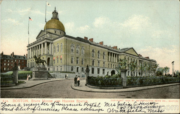 BOSTON, STATE HOUSE AND HOOKER STATUE.