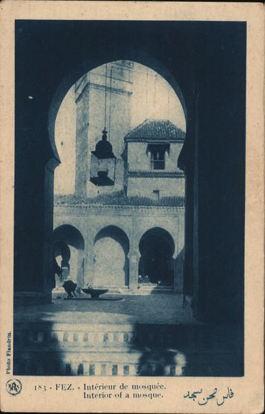 Front: ADR YRS I83 FEZ. Intérieur de mos quée. Interior of a mosque Photo Flandrin. Back: CARTE POSTALE Photo FLAN.DRIN, 128, rue Gay-Lussac, Casablanea.
