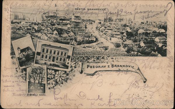 Front: MESTYS BRANKOVICE POZDRAV z BRANKOVIC. KGSTEL OSKOLA Qlte se hiene rren Trceoder KeEdvavá voda. R nt Ka Back: ER 33713 04 DOPISNICE. Tiskopis. ER 72//5 Phrr NIEA ds 3/1 40 2BESTELLT 24.7.03 14 270 KAIS.IKOENIO TERR.POS N BRES DESTERR POST