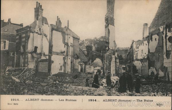 Front: 1914... ALBERT Somme Les Ruines 1914... ALBERT (Somme) The Ruins ED 15me Série Back: CARTE POSTALE Correspondance Adresse E. Le Deley, Imp.-Edit., 127, Boutevard de Sébastopol Paris
