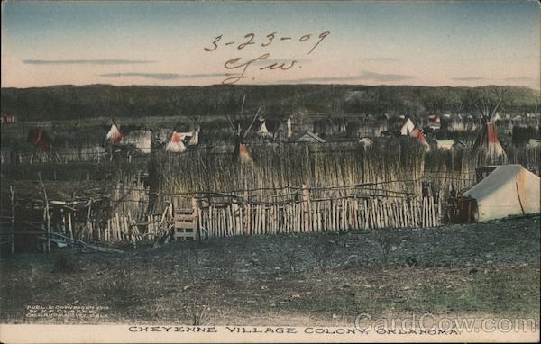 Front: - کی 2 ه - PUBL.IS . 1998 CHEYENNE VILLAGE COLONY, OKLAHOMA. Back: STAMP POST CARD DOMESTIC, 10 CORRESPONDENCE ADDRESS ONLY FOREIGN, 2 c.i THE NLBERTYPE 8O. BROOKLYN, NY