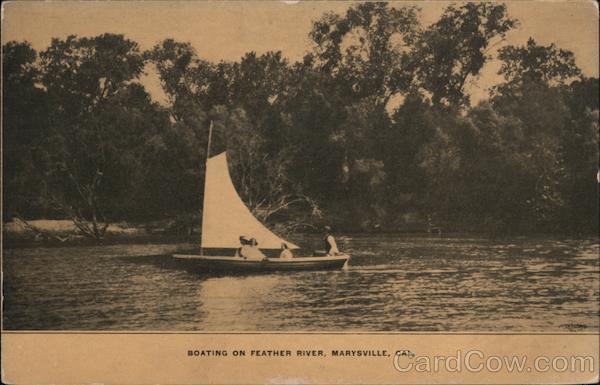 Front: BOATING ON FEATHER RIVER, MARYSVILLE, CAL, Back: AUTHORIZED BY ACT OF CONGRESS MAY 19,18984 9 POST CARD oooooooooooooo gPLACE A ONE CENTRE STAMP HERE CORRESPONDENCE ADDRESS