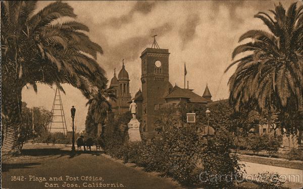 Front: 1842- Plaza and Post Office, San Jose, California Back: ho METEO Address 49. Dost 3 Card -SOUVENIR PUBLISHING CO. SAN FRANCISCO & LOS ANGELES CAL This Space for Correspondence