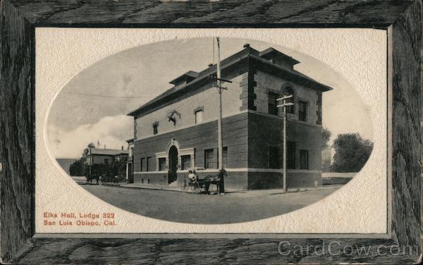 Front: Elks Hall, Lodge 322 San Luis Obispo, Cal. Back: 10 A140 POST CARD Place Stamp Here Domestic One Cen SERIES Foreign: Two Cents Message Address SL 10 Pub. by Pacific Novelty Co. of San Francisco, Cal. Made in Germany. 196269
