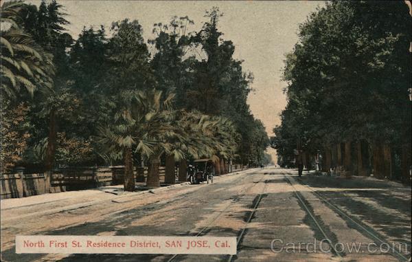 Front: North First St. Residence District, SAN JOSE, Cal. Back: No. 18 Publ. by Newman Post Card Co., Los Angeles, Cal. (Made in Germany). ลน Write here. POST CARD. Foreign Panama Mexico Cuba Canada sessions Island Pos- Domestic Here. Place Postage