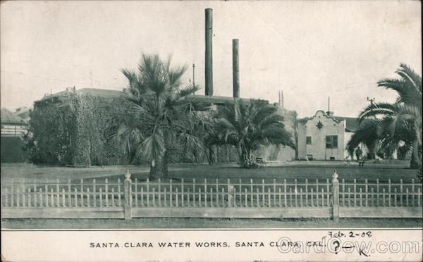 Front: 38 Feb. 2-08 SANTA CLARA WATER WORKS, SANTA CLARA, CAL. Back: NERAL POST CARDOT KLIN 190 FRANCISCO CAL MESSAGE PUBLISHED BY THE POLYCHROME CO SA Miss Myrale Noorten, . Modesto, cal. 8