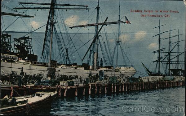 Front: Loading freight on Water Front, San Francisco, Cal. Back: Pub. by the Cal. Nov. Co., San Francisco, Cal. For Correspondence only For Address only Post (ÅRD