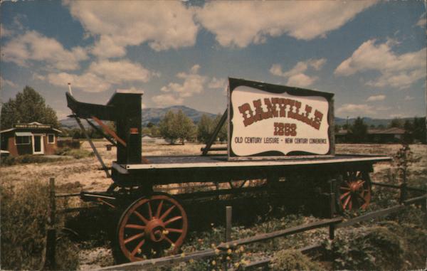 Sign Érected by the Confederacy as a part of the Danville Centenial Celebration. 1858 - 1958 It hasn's changed much-lived at 233 Montez Dr. When we moved Danville on 3 1964, Mor-Color Products, P. O. Box 416, Danville, Calif.