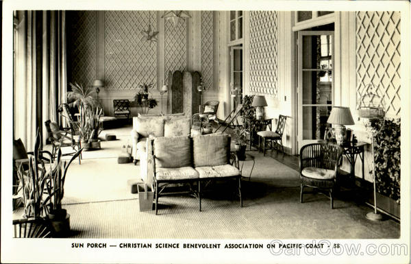 Front: SUN PORCH CHRISTIAN SCIENCE BENEVOLENT ASSOCIATION ON PACIFIC COAST - 38 Back: THIS SPACE FOR THE ADDRESS