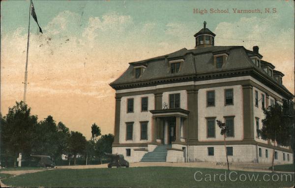 Front: High School, Yarmouth, N.S. 600,514 Back: SOUVENIR POST GARD A G NE Drinted in Great Britain neocent Som f. 20. Dankescio 2/53 hacia el San Francis. lal's July 3,