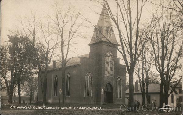 Front: SHORN ST. JOHN'S EPISCOPAL CHURCH ERECTED 1804. WORTHINGTON, Q. WESTERVIKTE, Back: POST CARD PLACE STAMP HERE Α ε ο O CORRESPONDENCE ADDRESS