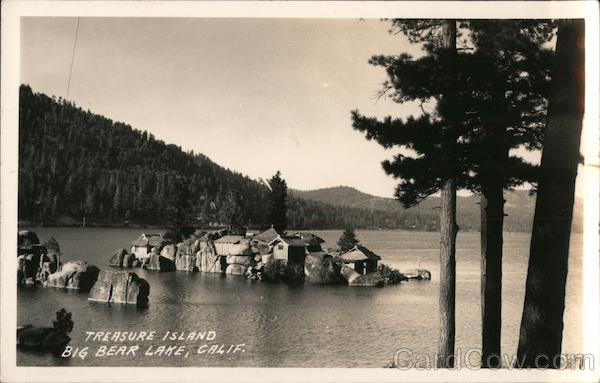 Front: TREASURE ISLAND BIG BEAR LAKE, GALI Back: POST CARD PLACE STAMP HERE CORRESPONDENCE ADDRESS ut