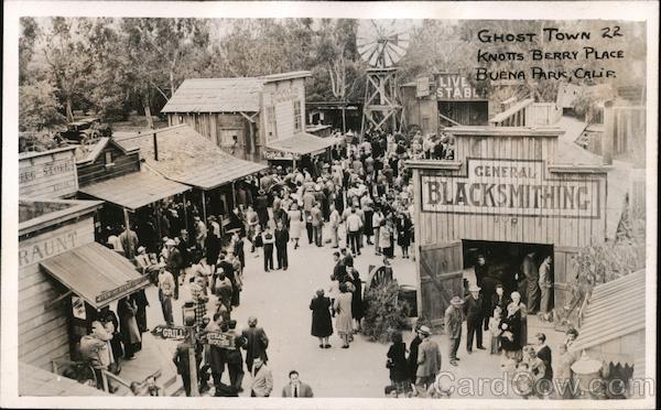 Front: 4 GHOST TOWN 22 Knots BERRY PLACE VE BUENA PARK, Cquis. TOWN JAIL 16 STORE BLACKSMITHING RAUAT GRILL S103 HOUSE Back: ADDRESS Card Knott's Ben t ona Park Daily Post OSRESPONDINOS