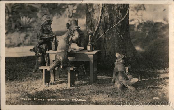 Front: THE FOX FAMILY" BUSCH GARDENS. PASADEN Back: POST CARD AA 2 o A PLACE A z STAMP 2 o HERE o A 2 O NO CORRESPONDENCE ADDRESS