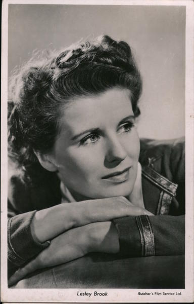 Front: Lesley Brook Butcher's Film Service Ltd. Back: Lesley Brook has gained fame on the stage and screen. She has appeared in many British films. POST CARD Copyright Photograph. Published by Real Photographs Co. Ltd. Victoria House, Southport