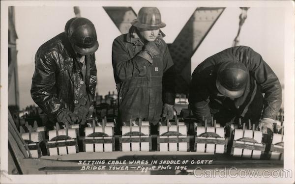 Front: SETTING CABLE WIRES IN SADDLE OF G.GATE BRIDGE TOWER ~Pizgoit Photo 1046 Back: POST CARD CORRESPONDENCE ADDRESS