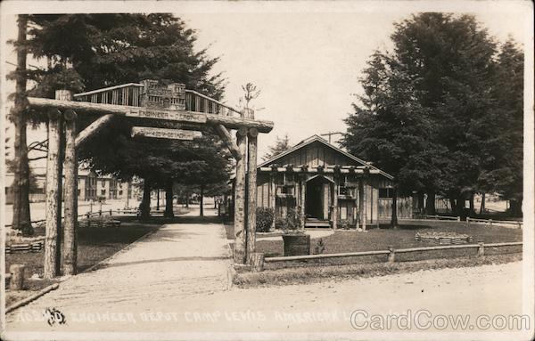 Front: ENGINEER - DE FOR 420-DETACH ENGINEER VERT CAMP LEWIS RARIK LK WASH Back: POST CARD A PLACE * STAMP o HERE a CORRESPONDENCE ADDRESS
