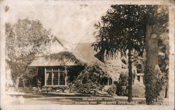 Front: COLUMBARIUM CHAPEL OLIVET MEMORIAL PARK - SAN MATEO COUNTY Back: PósT CARD CORRESPONDENCE ADDRESS ST CARDS FRANCISCO wat 5