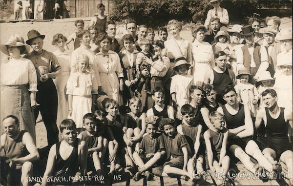 Front: la SAND BEACH,/MONTE RIO 115 Back: 25 POST CARD azo A PLACE E STAMP o HERE 0 AA 2 o NAME AND ADDRESS HERE CORRESPONDENCE HERE