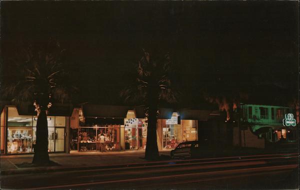 Front: 250 CAMET CAR Back: NIGHT LIGHTS ALONG PALM CAN- YON DRIVE Palm Springs, California U.S.A. Published by Petley Studios, 4051 E. Van Buren, Phoenix, Ariz. C25280-Color Photo by Jim Burke