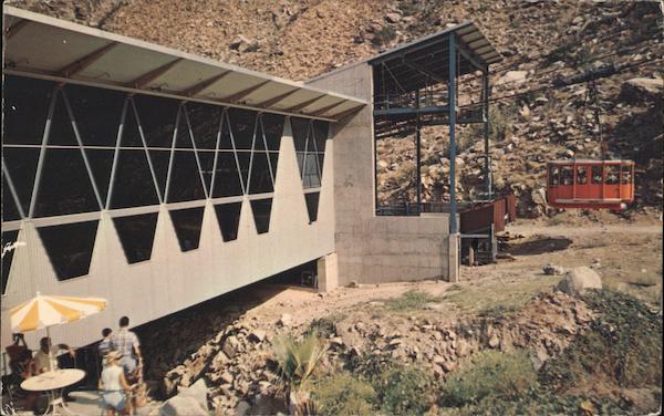 TRAM RIDE Palm Springs, California TRAM CAR leaving for the most Spectacular Ride in the world. Potley P71664 POST CARD . Distributed by Petley Studios, 4051 E. Van Buren, Phoenix, Arizona. Plastichrome