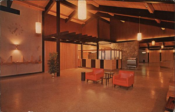 B07 Spacious Lobby Awaits Your Arrival at Guenther's MURRIETA HOT SPRINGS RESORT MURRIETA, CALIFORNIA PLACE STAMP HERE L - POST CARD Amescolor Publishers 1310 S. Escondido Blvd., Escondido, Calif. 410042