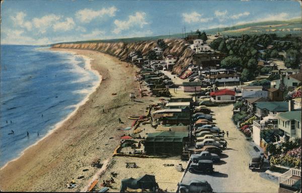 R. M. MARRINER, LAGUNA BEACH, CALIFORNIA NEAR LAGUNA BEACH, CALIFORNIA CRYSTAL COVE BEACH, U. S. HIGHWAY 101 Genuine Curteich-Chicago "C. T. Photochrom" Post Card (Reg. U.S. Pat. OH!) Post Card 2C-P2165 HERE STAMP PLACE