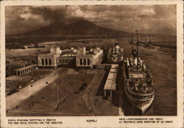 Front: NEUE LANDÜNGSBRUCHE UND VESUV LA NOUVELLE GARE MARITIME ET LE VESUV NUOVA STAZIONE MARITTIMA E VESUVIO NAPOLI THE NEW NAVAL STATION AND THE VESUVIUS Back: AROTANTE