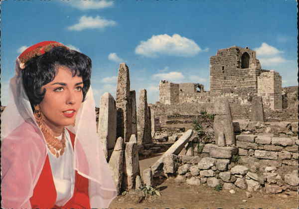 LIBAN Libanaise en costume oriental aux ruines de Byblos (Jebail)
