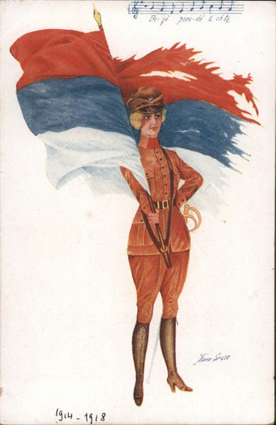 Front: Boogé prov. dé chte Timer DEEP 1914-1918 Back: Fantaisie trichrome. – A. Noyer. - Paris. - Serie n° 23 LES HYMNES NATIONAUX par X. SAGER Visé Paris nº 112 Fabrication française