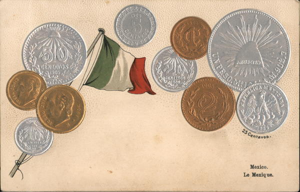 Front: J)3333 3353935 SIVU JUBIR38) NIVOS WONTAVOS 321 907, RP90B Casssss 22 ELECTED DIA SOS. seis 25 Cen ventavos. 05 Mexico. Le Mexique. Back: Tarjeta Postal Union Postale Universelle.