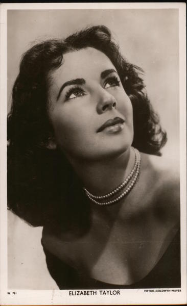 Front: W. 761 ELIZABETH TAYLOR METRO-GOLDWYN-MAYER Back: THE “PICTUREGOER” SERIES, 128 LONG ACRE, LONDON, W.C.2. NO W 761 From Greetings and Best Wishes PICTUREGOER POST CARD PICTUREGOER POST CARD FOR ADDRESS ONLY