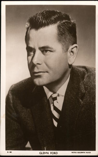 Front: . 882 GLENN FORD METRO GOLDWYN MAYER Back: THE PICTUREGOER” SERIES, 128 LONG ACRE, LONDON, W.C.2 From Greetings and Best Wishes PICTUREGOER POST CARD FOR ADDRESS ONLY