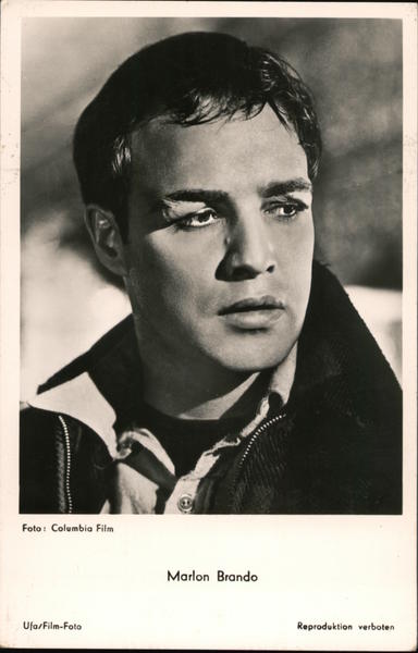 Front: Foto: Columbia Film Marlon Brando Ufa/Film-Foto Reproduktion verboten Back: or the Waterfront 41954). FK 1480 Universum-Film AG., Abt. Film-Foto, Berlin-Tempelhof