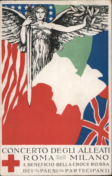 Front: 4 . CONCERTO DEGLI ALLEATI ROMA MILANO A BENEFICIO DELLA CROCE ROSSA DEI=PAESI=PARTECIPANTI Back: -VISTO CENSURA SA EDITRICE D'ARTE BESTETT E TOMMINELUI-MILANO CARTOLINA POSTALE