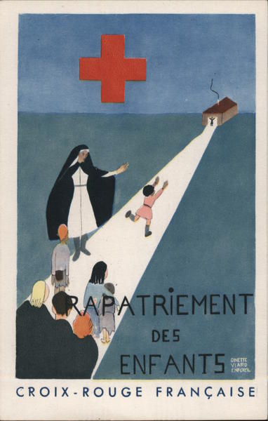 Front: RAPATRIEMENT DES ENFANTS GINETTE VIARD ENP CREIL CROIX-ROUGE FRANÇAISE Back: CARTE POSTALE IMPRIMÉ EN FRANCE ADHÉREZ A LA CROIX-ROUGE FRANÇAISE UU