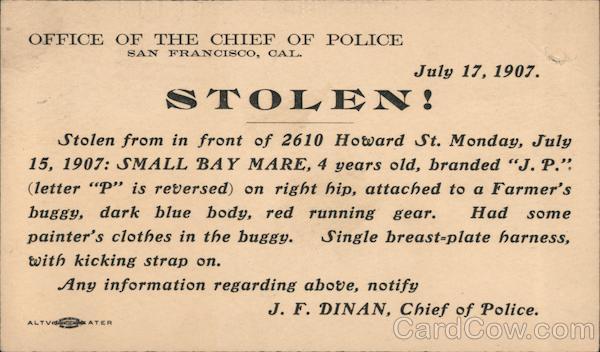 15, 1907: SMALL BAY MARE, 4 years old, branded āJ. P.ā