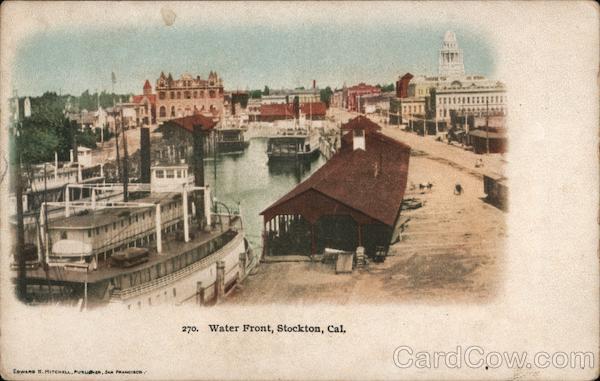 Front: 270. Water Front, Stockton, Cal. EDWARD H. MITCHELL, PurudhR, SAN FRANCISCO Back: PLACE STAMP HERE Post Card DOMESTIC ONE CENT FOREIGN TWO CENTS THIS SIDE IS FOR THE ADDRESS.