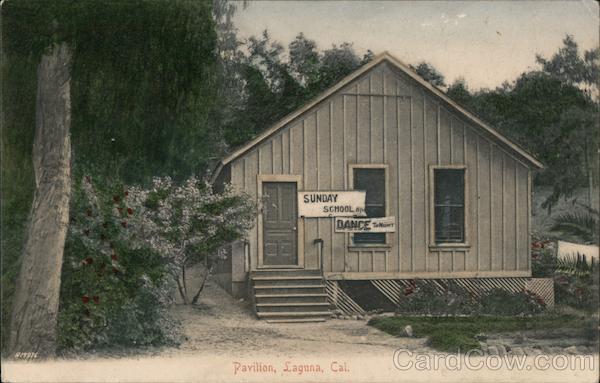 Front: SUNDAY SCHOOL DANCE TONIGHT Pavilion, Laguna, Cal. Back: POST CARD Place Postage Stamp Here Domestic One Cent Foreign Two Cents ("POSTAL CARD – CARTE POSTALE”) M. Rieder, Publ., Los Angeles, Cal. and Dresden. No. 6603
