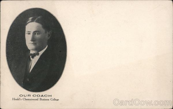 Front: OUR COACH Heald's Chesnutwood Business College Back: ONE POST CARD. CENT STAMP 11 MUM WWW HERE THIS SIDE FOR ADDRESS ONLY SANTA CRUZ