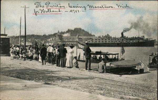 Front: The Puritan, leaving Macalawa, Mich. for Holland, in 4151. un SO AN AN AAN Back: PHOTOETTE Post Card MADE BY C. U. WILLIAMS BLOOMINGTON ILLINOIS