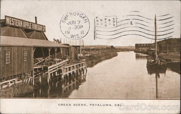 Front: WESTERN APPLE VINEGAR C! AX- HEBOYGO (es JUN72 y-30P 19 WIS CREEK SCENE, PETALUMA, CAL. Back: USPOSTAGE the Foteles warafton . ADDRESS AN POLY. HROME von we o Ruth stacked 628 new Yorhane sheboygan Wis. diecte asg