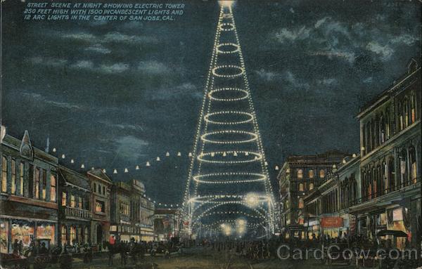 12 ARC LIGHTS IN THE CENTER OF SAN JOSE,CAL.
