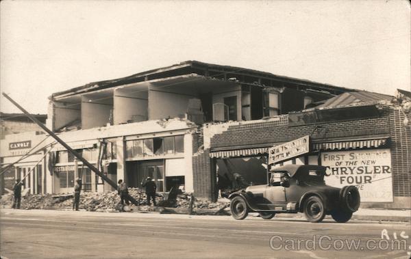 Front: CAROLF FIRST SHOW OF THE NEW CHRYSLER FOUR PE Back: 15. B earthquake June 29, 1925 POST CARD 30- sko-SR AA zo A PLACE A Z STAMP 2 o HERE O ADDRESS - AZO CORRESPONDENCE Maxwell Chrysler (A Wolf