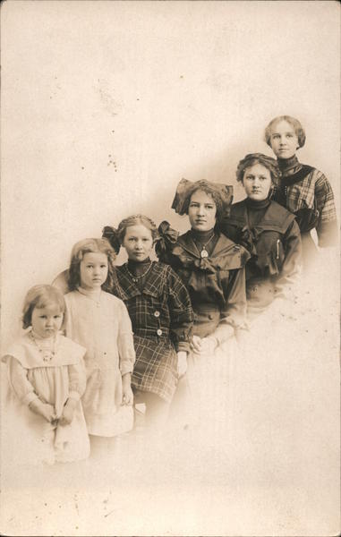 POST CARD A A Zo A A PLACE A z STAMP 2 o HERE O A A zo A RESPONDENCE HERE NAME AND ADDRESS HERE 1969-ESPONDENCE HERE There are Jan Berons do Blooming dald Mich. taken About 1915 daughter